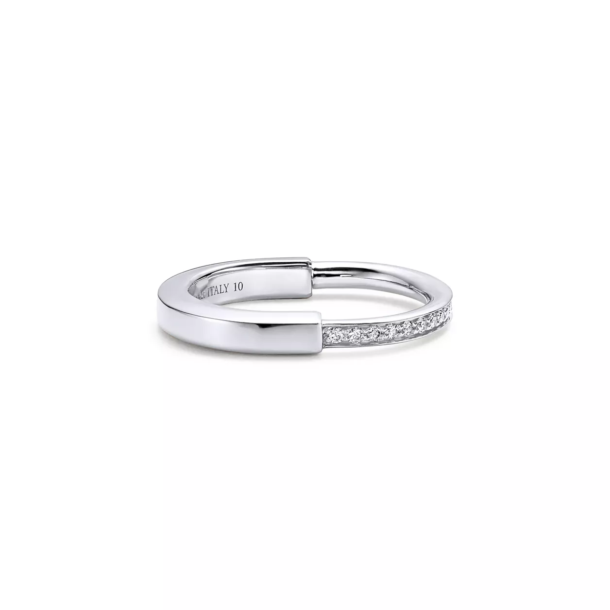 Tiffany Lock is an expression of love’s enduring protection, inspired by a padlock from The Tiffany Archives that dates to 1883. Designed to keep safe that which is cherished, Lock is a universal symbol of what matters most. This ring is expertly crafted in 18k yellow gold with hand-set diamonds. Wear this striking ring on its own or with your everyday ring stack.